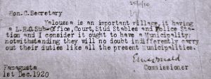 Το 1920 υποβλήθηκε στις αποικιακές αρχές αίτημα για αναγνώριση της Αιγιαλούσας ως Δήμου. Στο σχετικό έγγραφο, με θετική εισήγηση, ο Διοικητής Αμμοχώστου αναφέρει: «Αξιότιμε Κύριε Γραμματέα, η Γιαλούσα είναι ένα σημαντικό χωριό, καθώς διαθέτει υποκατάστημα Κτηματολογίου (L.R.O.), Δικαστήριο, Σταύλους Αναπαραγωγής (Stud Stables) και Αστυνομικό Σταθμό, και θεωρώ ότι θα έπρεπε να έχει καθεστώς Δήμου…» Αμμόχωστος, 1 Δεκεμβρίου 1920 (υπογραφή).Το έγγραφο αυτό είναι εξαιρετικά σημαντικό, διότι αναγνωρίζει ήδη από το 1920 ότι η Αιγιαλούσα πληρούσε τα κριτήρια για Δήμο. Τελικά, το αίτημα παραπέμφθηκε «στις ελληνικές καλένδες».